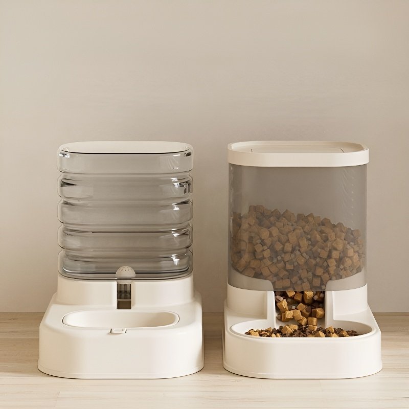 เครื่องให้อาหารสัตว์เลี้ยงอัตโนมัติ ถ้วยน้ำคู่ ขนาดใหญ่